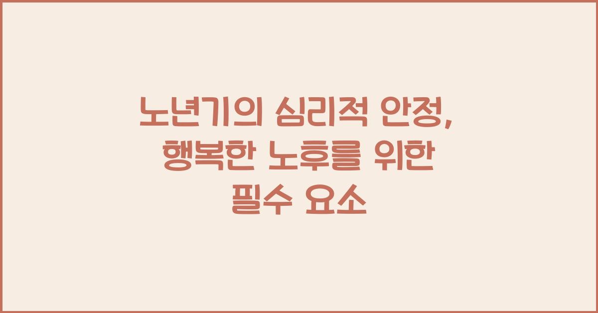 노년기의 심리적 안정이란?노년기의 심리적 안정이란, 노인들이 자신이 처한 상황을 긍정적으로 받아들이고 정신적으로 건강한 상태를 유지하는 것을 의미합니다. 이는 주로 스트레스 관리, 적절한 사회적 관계, 그리고 개인적인 만족감에서 비롯됩니다. 노년기에는 생리적 변화뿐 아니라 사회적 역할의 상실, 친구와 사랑하는 사람의 잃음 등의 다양한 변화를 겪는데, 이러한 요소들이 심리적 안정에 큰 영향을 미칩니다.노년기의 심리적 안정 더 알아보기이 시기에 심리적 안정을 유지하는 것은 행복한 노후의 기본이며, 내적인 평화와 안정감을 촉진하여 삶의 질을 높이는 데 기여합니다. 특히, 노인들은 정서적으로 불안정할 수 있는 만큼, 건강한 정서적 패턴을 구축하는 것이 필요합니다. 따라서 주변 사람들과의 관계를 돈독히 하고, 독..