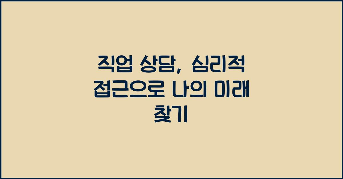 직업 상담, 심리적 접근으로 나의 미래 찾기