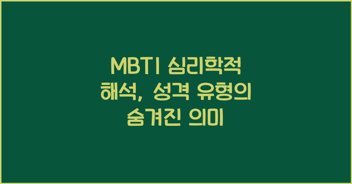 이번 글에서는 MBTI 심리학적 해석을 통해 성격 유형의 숨겨진 의미를 파헤쳐 볼 것입니다. 여러분의 성격과 타인과의 관계를 깊이 이해하는 데 도움이 될 것입니다.MBTI 심리학적 해석: 성격 유형 이해하기MBTI 심리학적 해석의 첫걸음은 자신의 성격 유형을 이해하는 것입니다. MBTI는 16가지 성격 유형으로 사람을 분류합니다. 각 유형은 특정한 특징과 선호를 지니고 있습니다. 예를 들어, 외향적인 사람은 사교적이고 적극적인 반면, 내향적인 사람은 조용하고 내성적입니다. 이러한 특성은 우리의 행동과 결정 방식에 깊은 영향을 미칩니다. 성격 유형에 따른 차이를 알아내는 일은 효과적인 소통의 초석이 될 수 있습니다. 여러분은 어떤 유형에属하나요? 생각해보며 다음 단락으로 넘어가겠습니다.여러분의 성격 유형은..